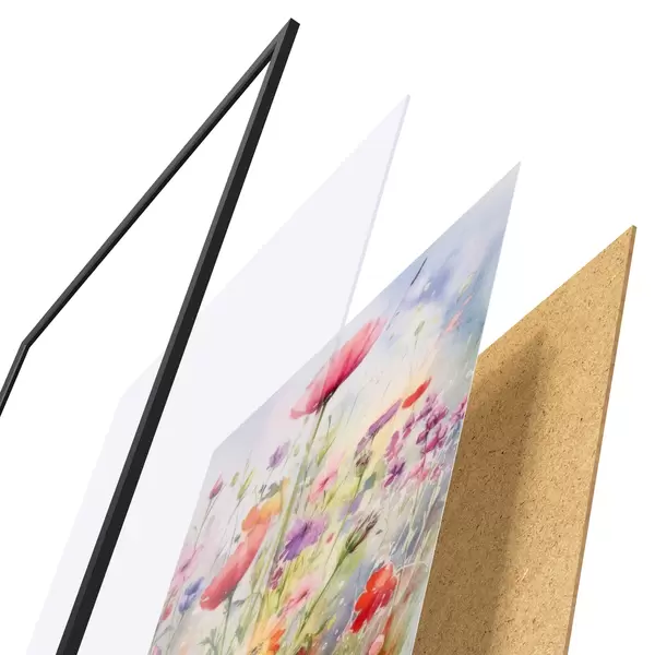 Plakāts sastāv no rāmja, pleksstikla, iespiestā attēla un skaidu plātnes pamatnes. Plakātu var uzreiz piekarināt pie sienas, pateicoties aizmugurē esošajiem stiprinājumiem.