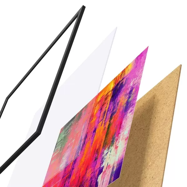 Plakāts sastāv no rāmja, pleksstikla, iespiestā attēla un skaidu plātnes pamatnes. Plakātu var uzreiz piekarināt pie sienas, pateicoties aizmugurē esošajiem stiprinājumiem.