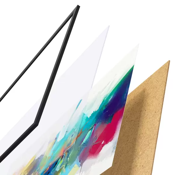 Plakāts sastāv no rāmja, pleksstikla, iespiestā attēla un skaidu plātnes pamatnes. Plakātu var uzreiz piekarināt pie sienas, pateicoties aizmugurē esošajiem stiprinājumiem.