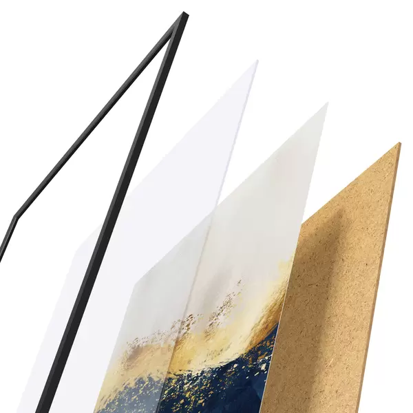 Plakāts sastāv no rāmja, pleksstikla, iespiestā attēla un skaidu plātnes pamatnes. Plakātu var uzreiz piekarināt pie sienas, pateicoties aizmugurē esošajiem stiprinājumiem.