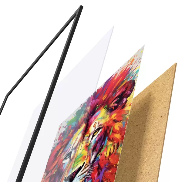 Plakāts sastāv no rāmja, pleksstikla, iespiestā attēla un skaidu plātnes pamatnes. Plakātu var uzreiz piekarināt pie sienas, pateicoties aizmugurē esošajiem stiprinājumiem.