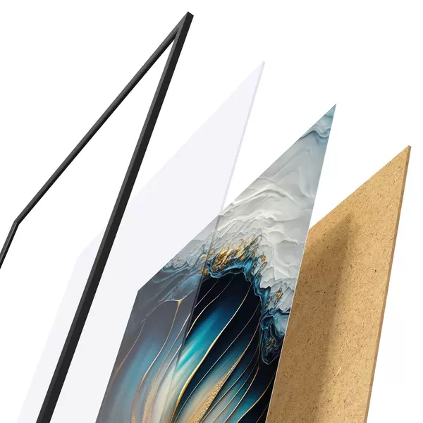 Plakāts sastāv no rāmja, pleksstikla, iespiestā attēla un skaidu plātnes pamatnes. Plakātu var uzreiz piekarināt pie sienas, pateicoties aizmugurē esošajiem stiprinājumiem.
