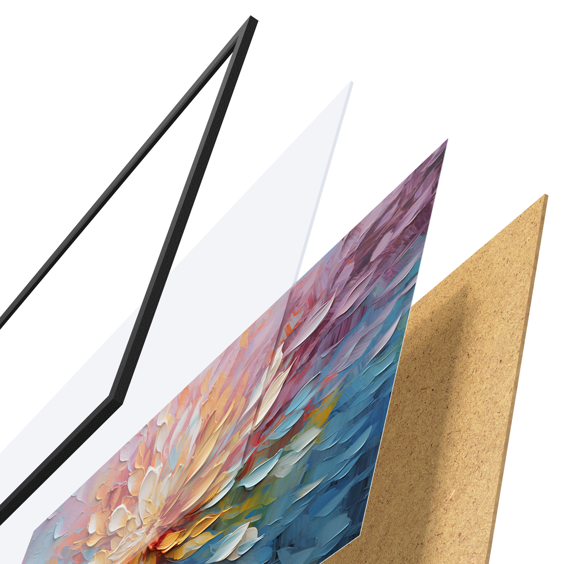 Plakāts sastāv no rāmja, pleksstikla, iespiestā attēla un skaidu plātnes pamatnes. Plakātu var uzreiz piekarināt pie sienas, pateicoties aizmugurē esošajiem stiprinājumiem.
