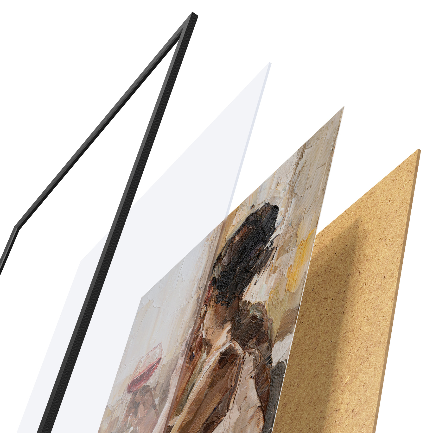 Plakāts sastāv no rāmja, pleksstikla, iespiestā attēla un skaidu plātnes pamatnes. Plakātu var uzreiz piekarināt pie sienas, pateicoties aizmugurē esošajiem stiprinājumiem.