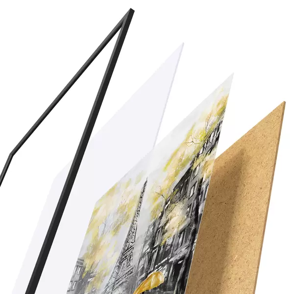 Plakāts sastāv no rāmja, pleksstikla, iespiestā attēla un skaidu plātnes pamatnes. Plakātu var uzreiz piekarināt pie sienas, pateicoties aizmugurē esošajiem stiprinājumiem.