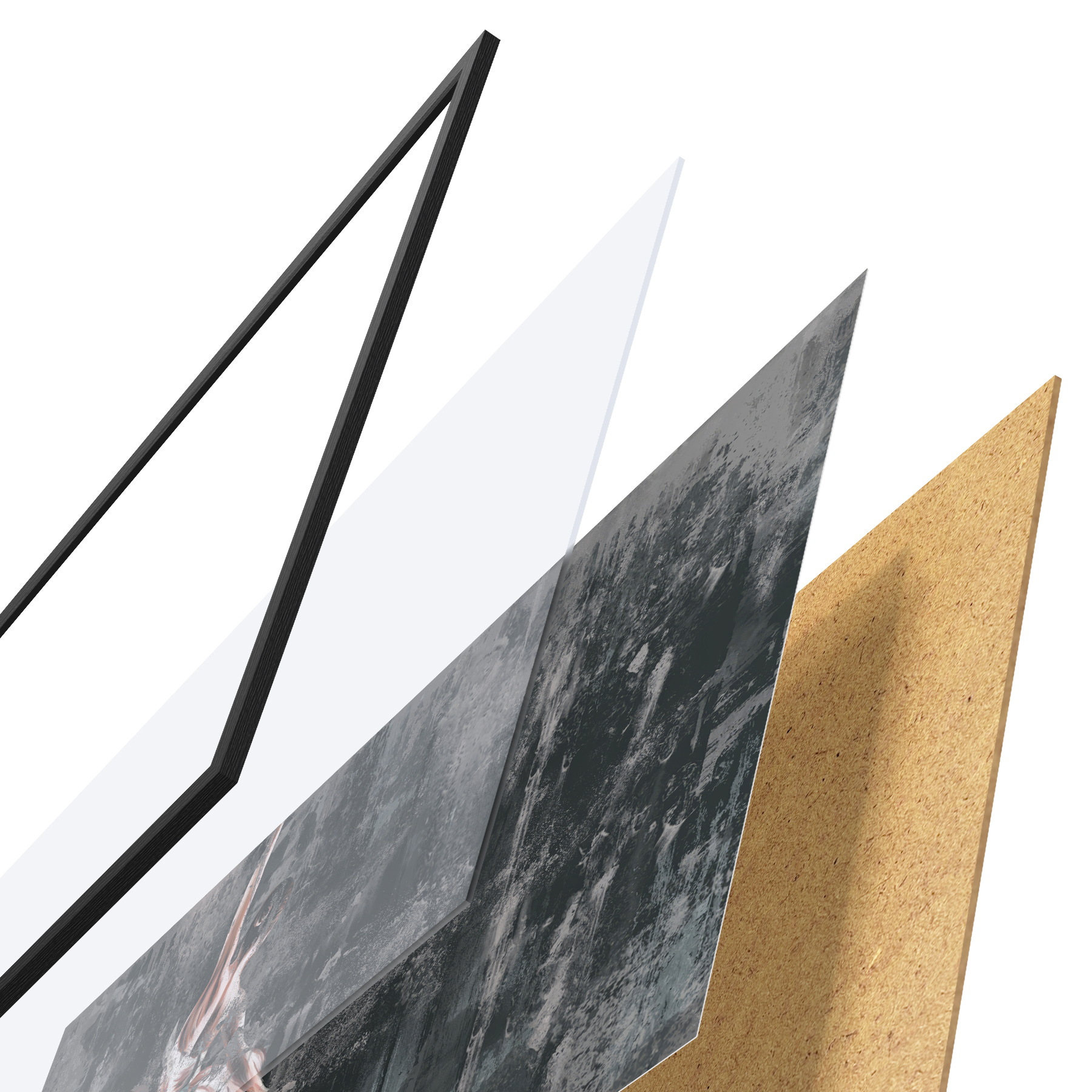 Plakāts sastāv no rāmja, pleksstikla, iespiestā attēla un skaidu plātnes pamatnes. Plakātu var uzreiz piekarināt pie sienas, pateicoties aizmugurē esošajiem stiprinājumiem.
