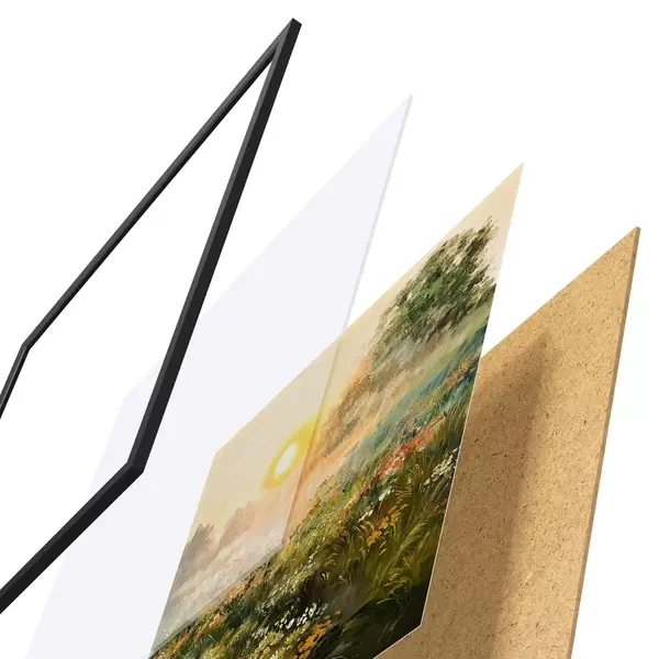 Plakāts sastāv no rāmja, pleksstikla, iespiestā attēla un skaidu plātnes pamatnes. Plakātu var uzreiz piekarināt pie sienas, pateicoties aizmugurē esošajiem stiprinājumiem.