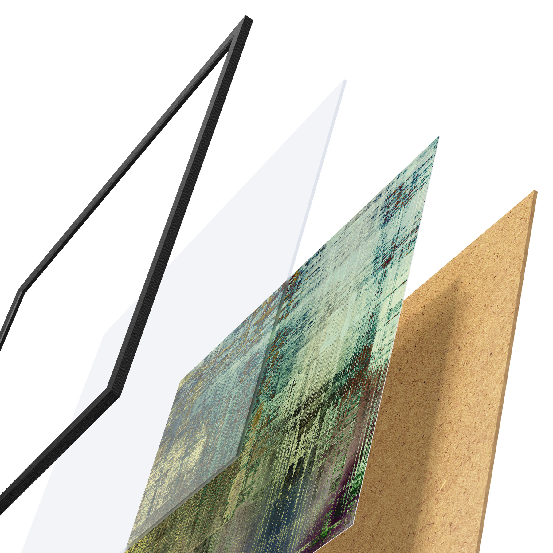 Plakāts sastāv no rāmja, pleksstikla, iespiestā attēla un skaidu plātnes pamatnes. Plakātu var uzreiz piekarināt pie sienas, pateicoties aizmugurē esošajiem stiprinājumiem.
