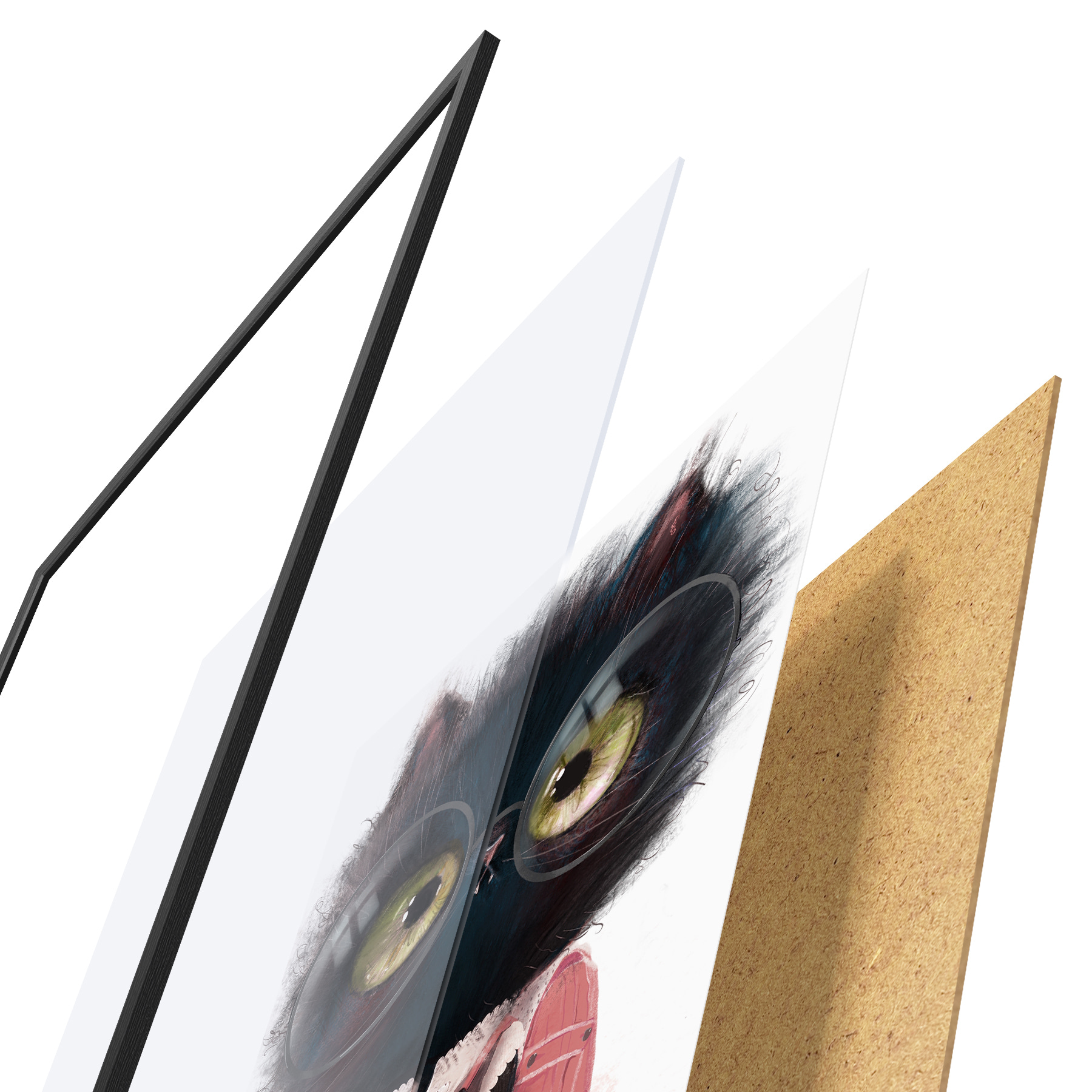 Plakāts sastāv no rāmja, pleksstikla, iespiestā attēla un skaidu plātnes pamatnes. Plakātu var uzreiz piekarināt pie sienas, pateicoties aizmugurē esošajiem stiprinājumiem.