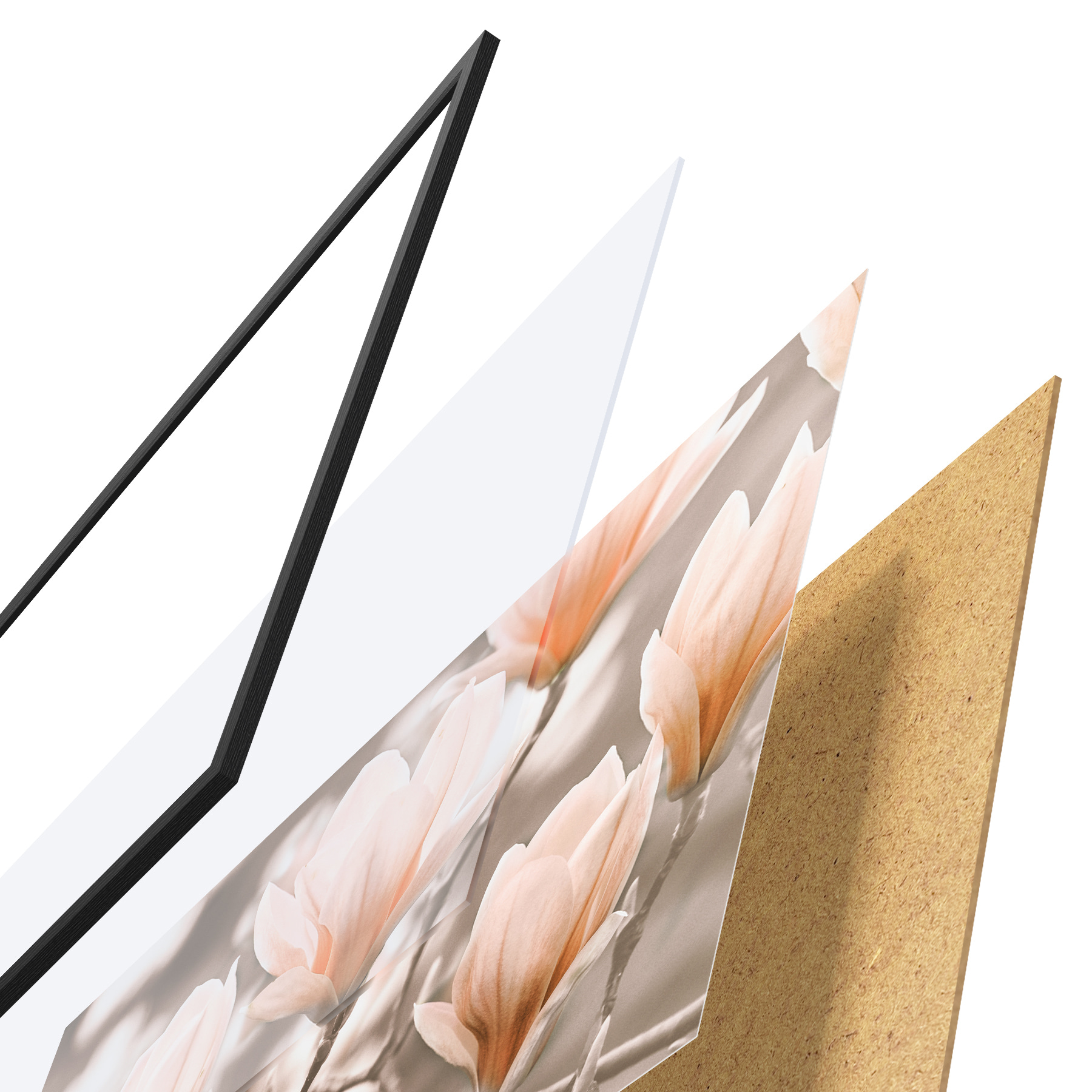 Plakāts sastāv no rāmja, pleksstikla, iespiestā attēla un skaidu plātnes pamatnes. Plakātu var uzreiz piekarināt pie sienas, pateicoties aizmugurē esošajiem stiprinājumiem.