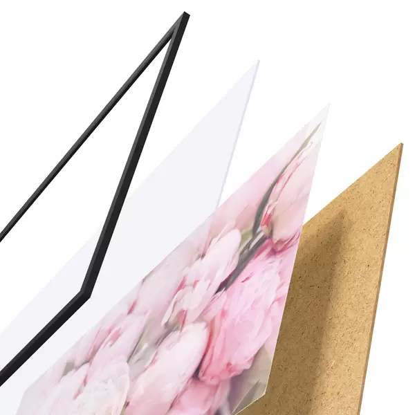Plakāts sastāv no rāmja, pleksstikla, iespiestā attēla un skaidu plātnes pamatnes. Plakātu var uzreiz piekarināt pie sienas, pateicoties aizmugurē esošajiem stiprinājumiem.