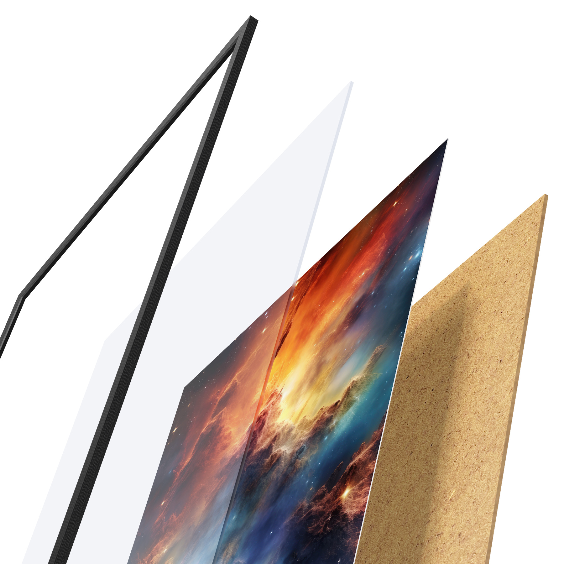 Plakāts sastāv no rāmja, pleksstikla, iespiestā attēla un skaidu plātnes pamatnes. Plakātu var uzreiz piekarināt pie sienas, pateicoties aizmugurē esošajiem stiprinājumiem.