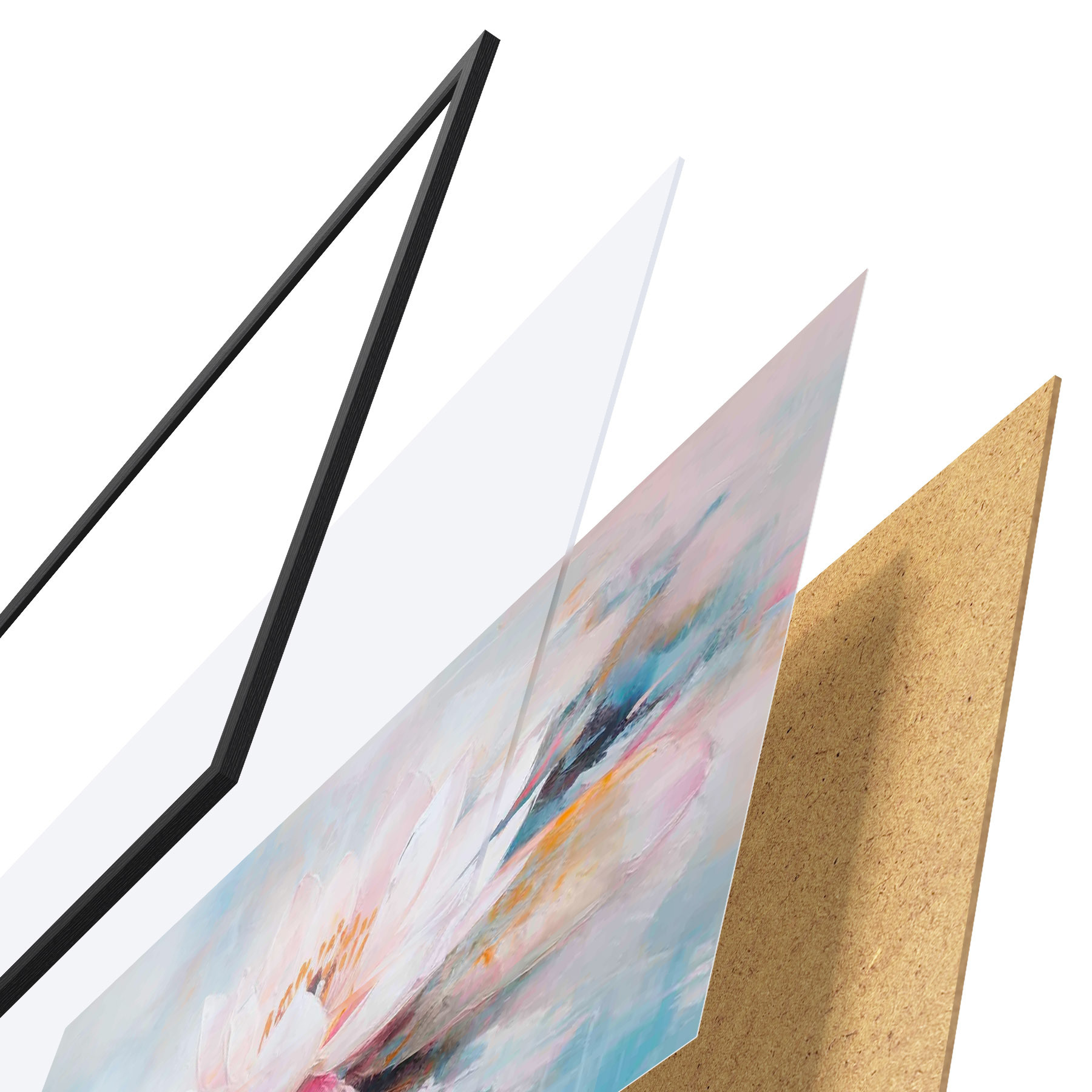Plakāts sastāv no rāmja, pleksstikla, iespiestā attēla un skaidu plātnes pamatnes. Plakātu var uzreiz piekarināt pie sienas, pateicoties aizmugurē esošajiem stiprinājumiem.