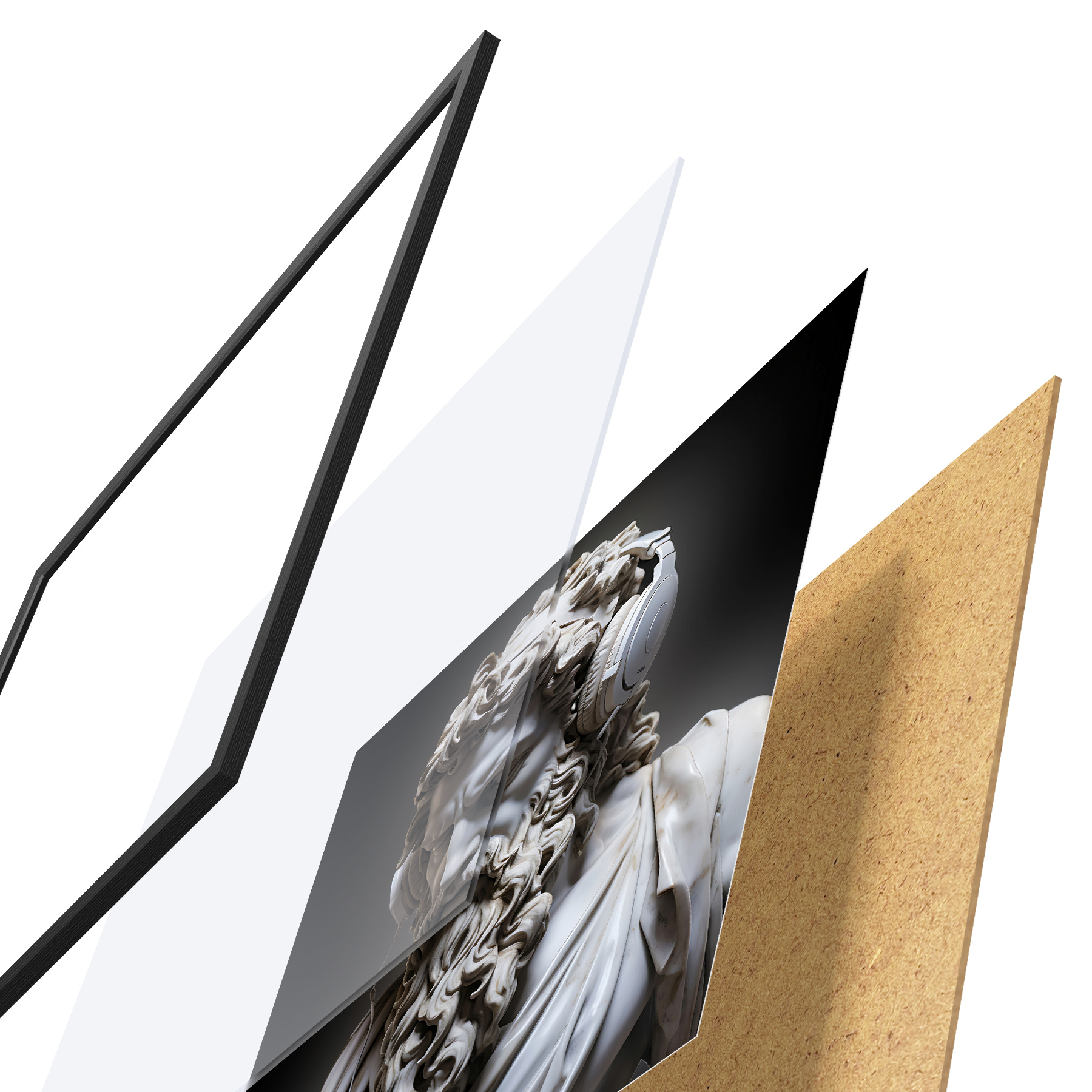 Plakāts sastāv no rāmja, pleksstikla, iespiestā attēla un skaidu plātnes pamatnes. Plakātu var uzreiz piekarināt pie sienas, pateicoties aizmugurē esošajiem stiprinājumiem.