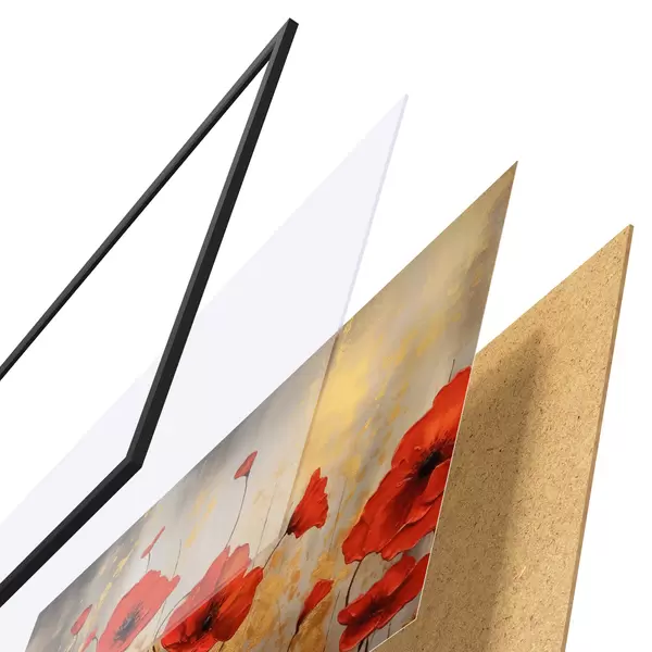 Plakāts sastāv no rāmja, pleksstikla, iespiestā attēla un skaidu plātnes pamatnes. Plakātu var uzreiz piekarināt pie sienas, pateicoties aizmugurē esošajiem stiprinājumiem.