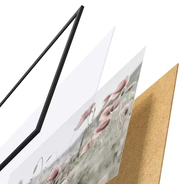 Plakāts sastāv no rāmja, pleksstikla, iespiestā attēla un skaidu plātnes pamatnes. Plakātu var uzreiz piekarināt pie sienas, pateicoties aizmugurē esošajiem stiprinājumiem.