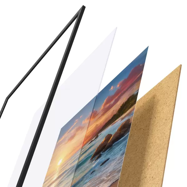 Plakāts sastāv no rāmja, pleksstikla, iespiestā attēla un skaidu plātnes pamatnes. Plakātu var uzreiz piekarināt pie sienas, pateicoties aizmugurē esošajiem stiprinājumiem.