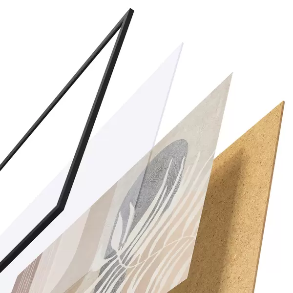 Plakāts sastāv no rāmja, pleksstikla, iespiestā attēla un skaidu plātnes pamatnes. Plakātu var uzreiz piekarināt pie sienas, pateicoties aizmugurē esošajiem stiprinājumiem.