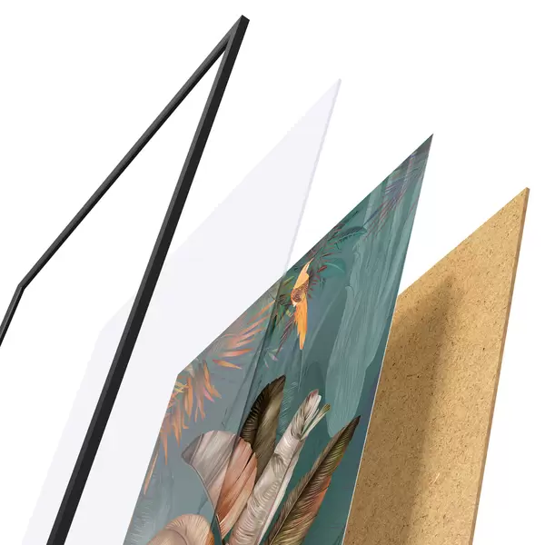 Plakāts sastāv no rāmja, pleksstikla, iespiestā attēla un skaidu plātnes pamatnes. Plakātu var uzreiz piekarināt pie sienas, pateicoties aizmugurē esošajiem stiprinājumiem.