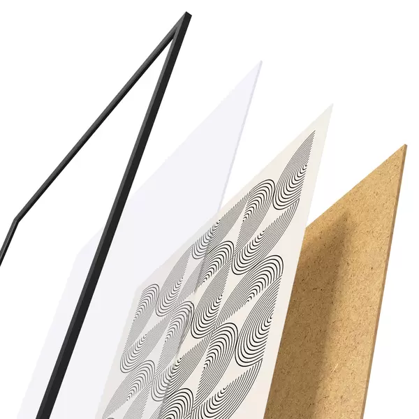 Plakāts sastāv no rāmja, pleksstikla, iespiestā attēla un skaidu plātnes pamatnes. Plakātu var uzreiz piekarināt pie sienas, pateicoties aizmugurē esošajiem stiprinājumiem.