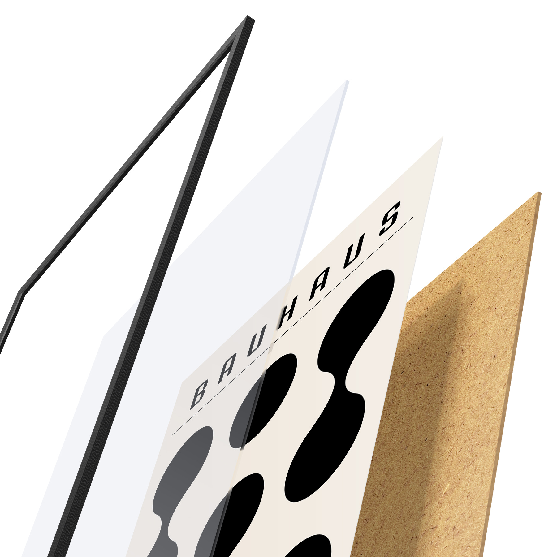 Plakāts sastāv no rāmja, pleksstikla, iespiestā attēla un skaidu plātnes pamatnes. Plakātu var uzreiz piekarināt pie sienas, pateicoties aizmugurē esošajiem stiprinājumiem.