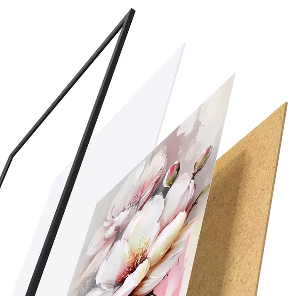 Plakāts sastāv no rāmja, pleksstikla, iespiestā attēla un skaidu plātnes pamatnes. Plakātu var uzreiz piekarināt pie sienas, pateicoties aizmugurē esošajiem stiprinājumiem.