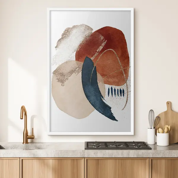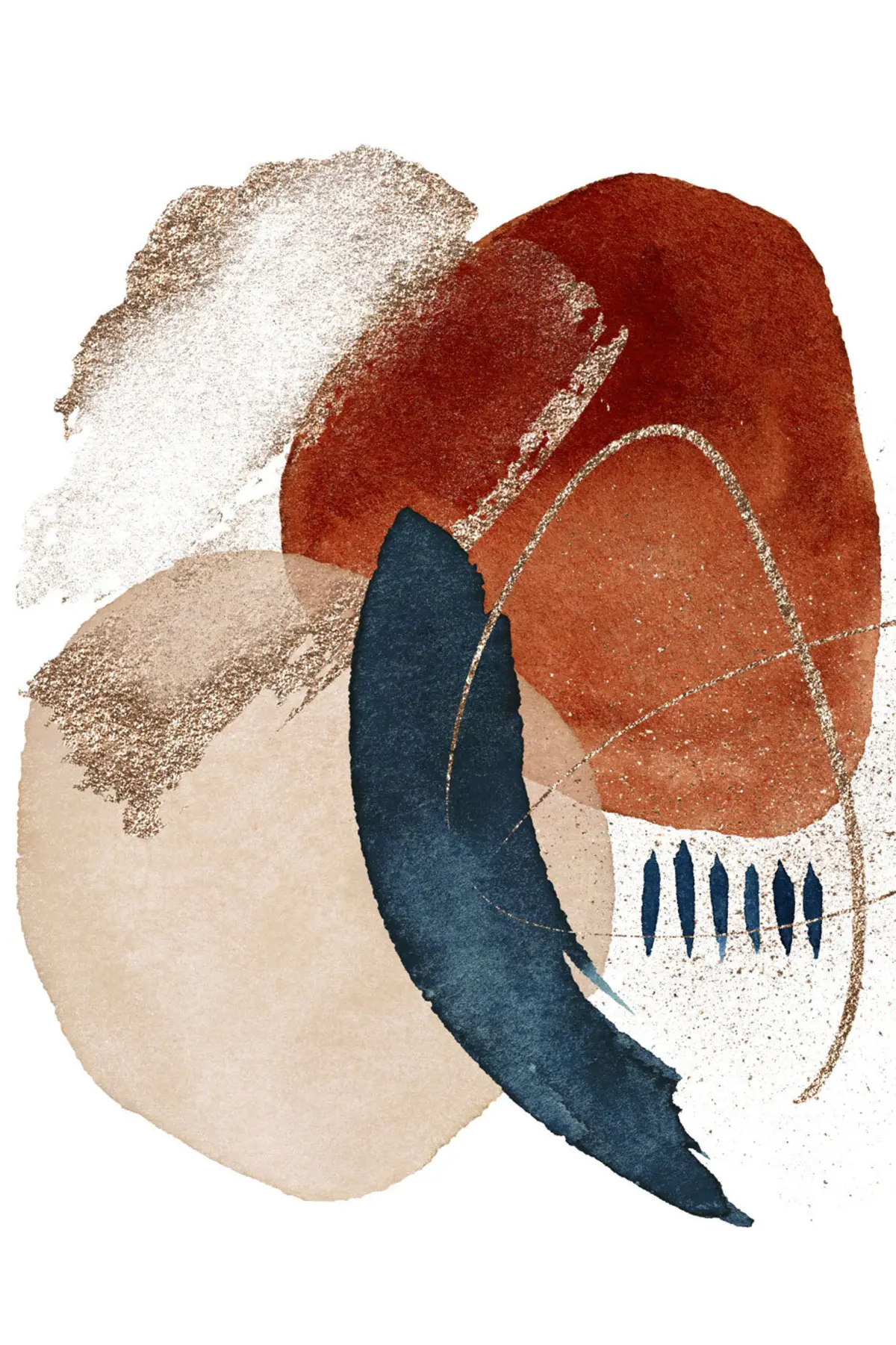 Plakāts Bēšs akvareļveida raksts un elementi uz balta fona Nr f35954