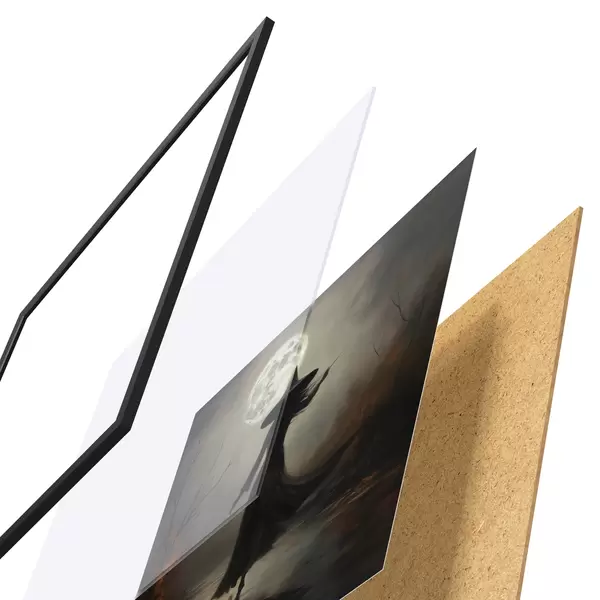 Plakāts sastāv no rāmja, pleksstikla, iespiestā attēla un skaidu plātnes pamatnes. Plakātu var uzreiz piekarināt pie sienas, pateicoties aizmugurē esošajiem stiprinājumiem.