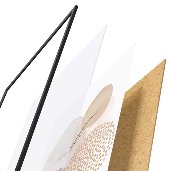 Plakāts sastāv no rāmja, pleksstikla, iespiestā attēla un skaidu plātnes pamatnes. Plakātu var uzreiz piekarināt pie sienas, pateicoties aizmugurē esošajiem stiprinājumiem.