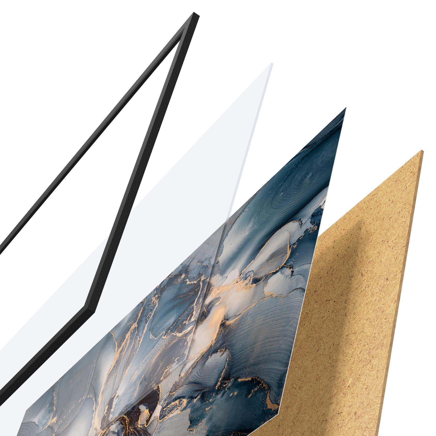 Plakāts sastāv no rāmja, pleksstikla, iespiestā attēla un skaidu plātnes pamatnes. Plakātu var uzreiz piekarināt pie sienas, pateicoties aizmugurē esošajiem stiprinājumiem.