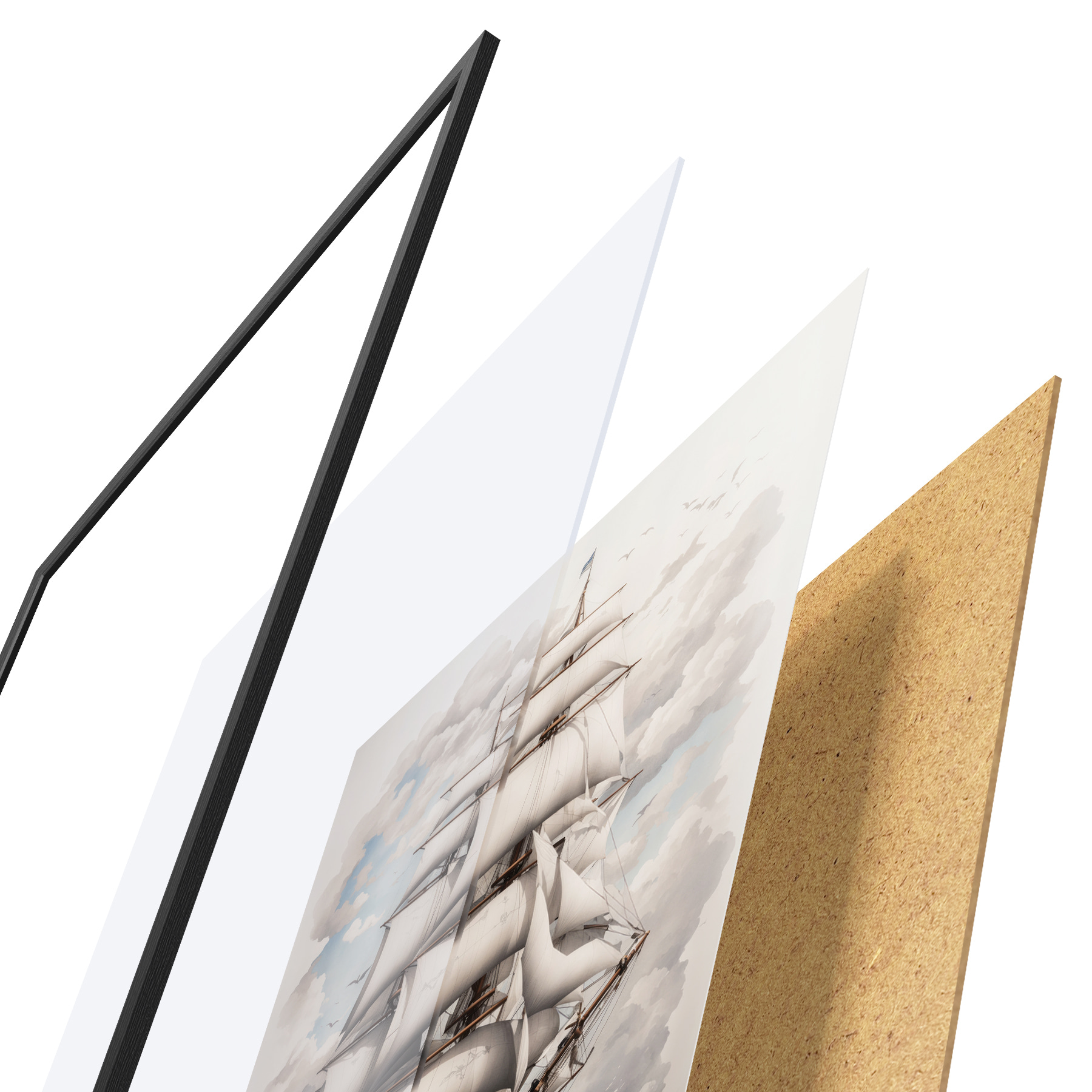 Plakāts sastāv no rāmja, pleksstikla, iespiestā attēla un skaidu plātnes pamatnes. Plakātu var uzreiz piekarināt pie sienas, pateicoties aizmugurē esošajiem stiprinājumiem.