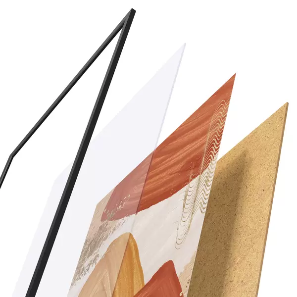Plakāts sastāv no rāmja, pleksstikla, iespiestā attēla un skaidu plātnes pamatnes. Plakātu var uzreiz piekarināt pie sienas, pateicoties aizmugurē esošajiem stiprinājumiem.