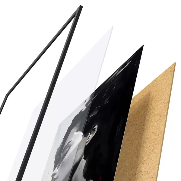 Plakāts sastāv no rāmja, pleksstikla, iespiestā attēla un skaidu plātnes pamatnes. Plakātu var uzreiz piekarināt pie sienas, pateicoties aizmugurē esošajiem stiprinājumiem.