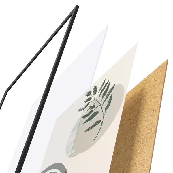 Plakāts sastāv no rāmja, pleksstikla, iespiestā attēla un skaidu plātnes pamatnes. Plakātu var uzreiz piekarināt pie sienas, pateicoties aizmugurē esošajiem stiprinājumiem.