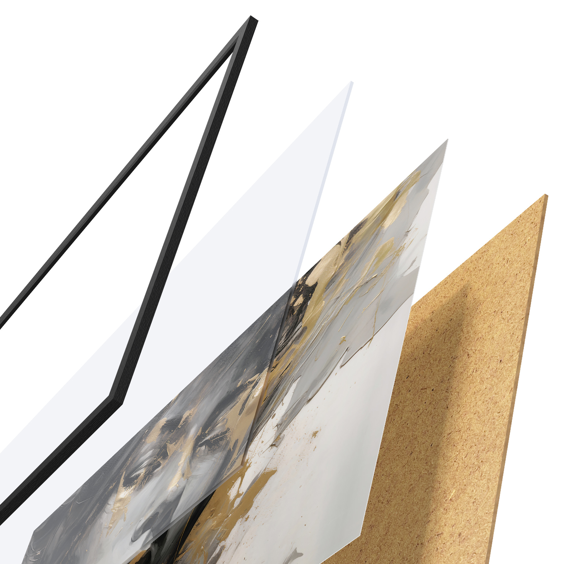 Plakāts sastāv no rāmja, pleksstikla, iespiestā attēla un skaidu plātnes pamatnes. Plakātu var uzreiz piekarināt pie sienas, pateicoties aizmugurē esošajiem stiprinājumiem.