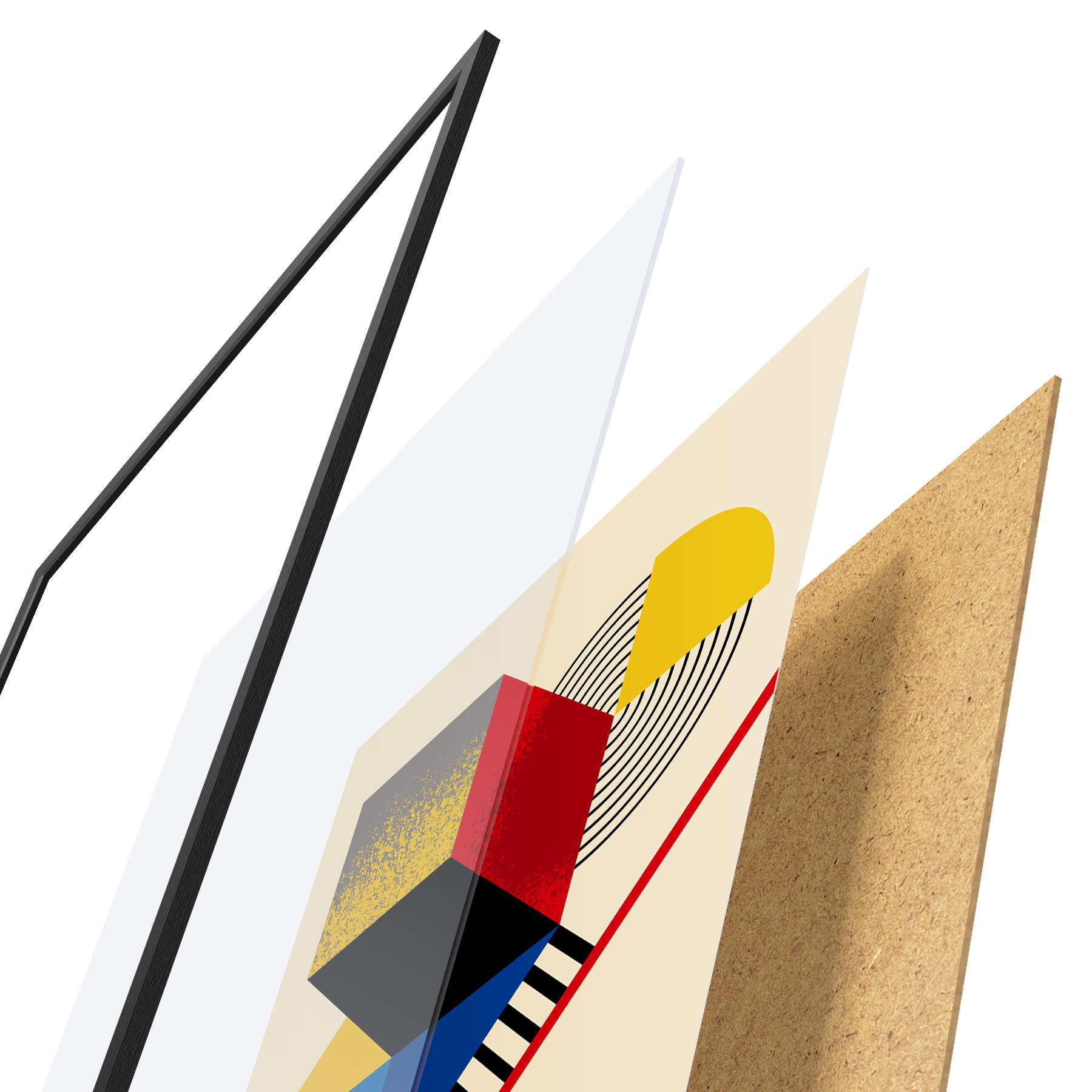 Plakāts sastāv no rāmja, pleksstikla, iespiestā attēla un skaidu plātnes pamatnes. Plakātu var uzreiz piekarināt pie sienas, pateicoties aizmugurē esošajiem stiprinājumiem.
