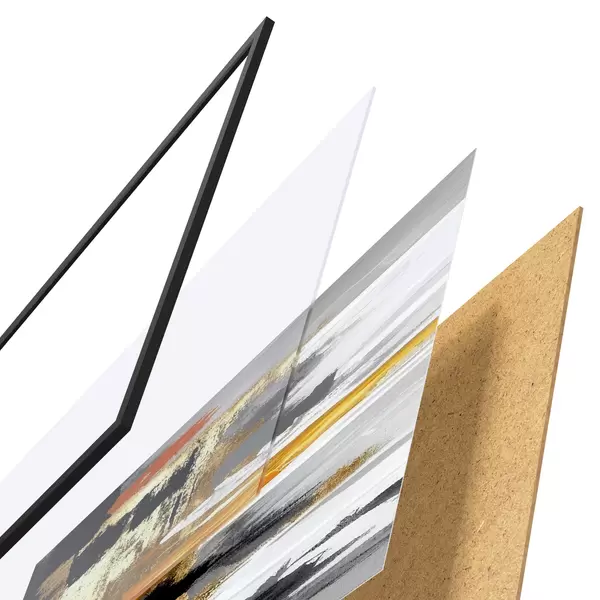Plakāts sastāv no rāmja, pleksstikla, iespiestā attēla un skaidu plātnes pamatnes. Plakātu var uzreiz piekarināt pie sienas, pateicoties aizmugurē esošajiem stiprinājumiem.