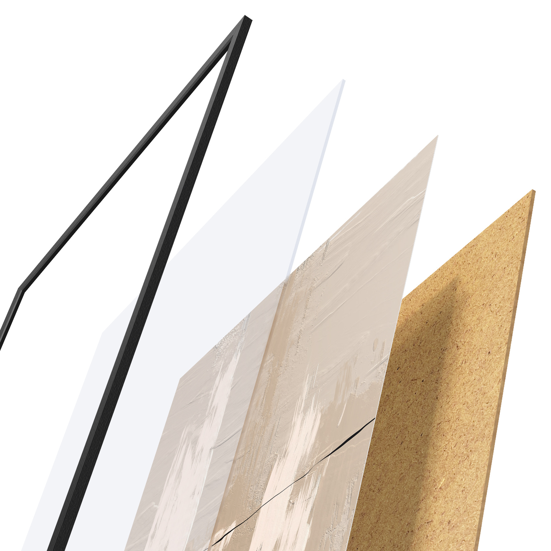 Plakāts sastāv no rāmja, pleksstikla, iespiestā attēla un skaidu plātnes pamatnes. Plakātu var uzreiz piekarināt pie sienas, pateicoties aizmugurē esošajiem stiprinājumiem.