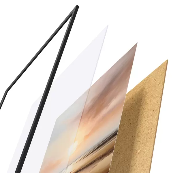 Plakāts sastāv no rāmja, pleksstikla, iespiestā attēla un skaidu plātnes pamatnes. Plakātu var uzreiz piekarināt pie sienas, pateicoties aizmugurē esošajiem stiprinājumiem.
