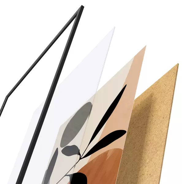 Plakāts sastāv no rāmja, pleksstikla, iespiestā attēla un skaidu plātnes pamatnes. Plakātu var uzreiz piekarināt pie sienas, pateicoties aizmugurē esošajiem stiprinājumiem.