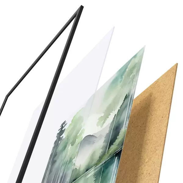 Plakāts sastāv no rāmja, pleksstikla, iespiestā attēla un skaidu plātnes pamatnes. Plakātu var uzreiz piekarināt pie sienas, pateicoties aizmugurē esošajiem stiprinājumiem.