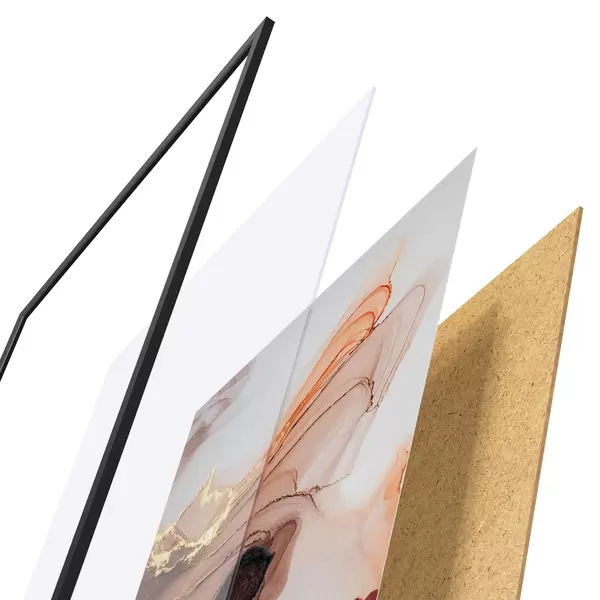 Plakāts sastāv no rāmja, pleksstikla, iespiestā attēla un skaidu plātnes pamatnes. Plakātu var uzreiz piekarināt pie sienas, pateicoties aizmugurē esošajiem stiprinājumiem.