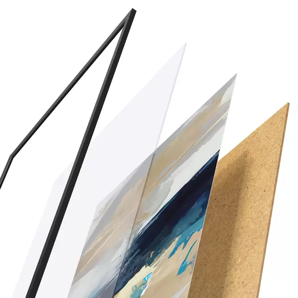 Plakāts sastāv no rāmja, pleksstikla, iespiestā attēla un skaidu plātnes pamatnes. Plakātu var uzreiz piekarināt pie sienas, pateicoties aizmugurē esošajiem stiprinājumiem.