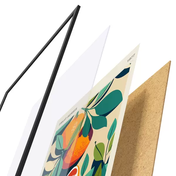 Plakāts sastāv no rāmja, pleksstikla, iespiestā attēla un skaidu plātnes pamatnes. Plakātu var uzreiz piekarināt pie sienas, pateicoties aizmugurē esošajiem stiprinājumiem.