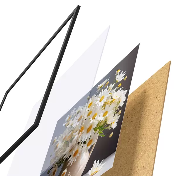 Plakāts sastāv no rāmja, pleksstikla, iespiestā attēla un skaidu plātnes pamatnes. Plakātu var uzreiz piekarināt pie sienas, pateicoties aizmugurē esošajiem stiprinājumiem.