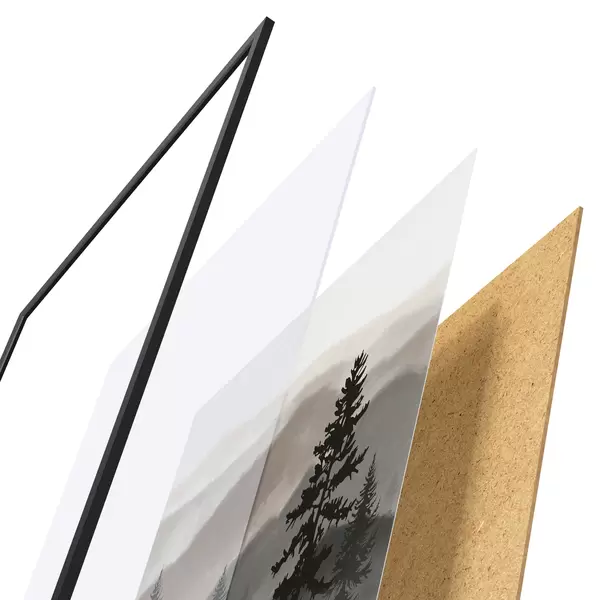 Plakāts sastāv no rāmja, pleksstikla, iespiestā attēla un skaidu plātnes pamatnes. Plakātu var uzreiz piekarināt pie sienas, pateicoties aizmugurē esošajiem stiprinājumiem.