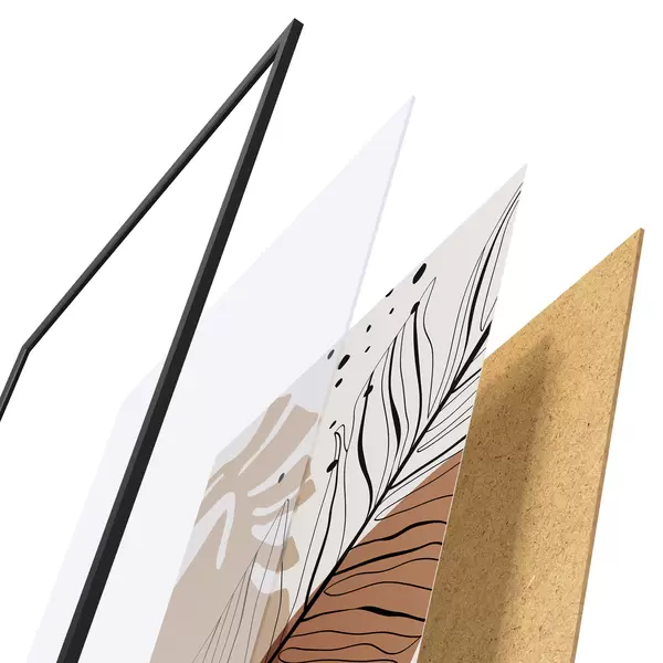 Plakāts sastāv no rāmja, pleksstikla, iespiestā attēla un skaidu plātnes pamatnes. Plakātu var uzreiz piekarināt pie sienas, pateicoties aizmugurē esošajiem stiprinājumiem.