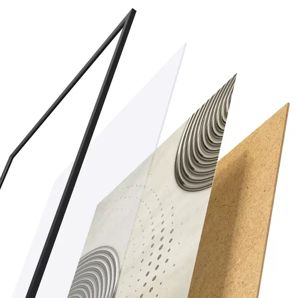 Plakāts sastāv no rāmja, pleksstikla, iespiestā attēla un skaidu plātnes pamatnes. Plakātu var uzreiz piekarināt pie sienas, pateicoties aizmugurē esošajiem stiprinājumiem.