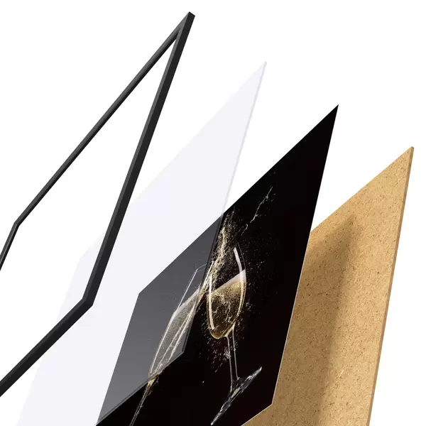 Plakāts sastāv no rāmja, pleksstikla, iespiestā attēla un skaidu plātnes pamatnes. Plakātu var uzreiz piekarināt pie sienas, pateicoties aizmugurē esošajiem stiprinājumiem.