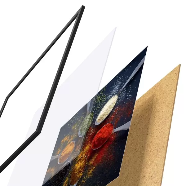 Plakāts sastāv no rāmja, pleksstikla, iespiestā attēla un skaidu plātnes pamatnes. Plakātu var uzreiz piekarināt pie sienas, pateicoties aizmugurē esošajiem stiprinājumiem.